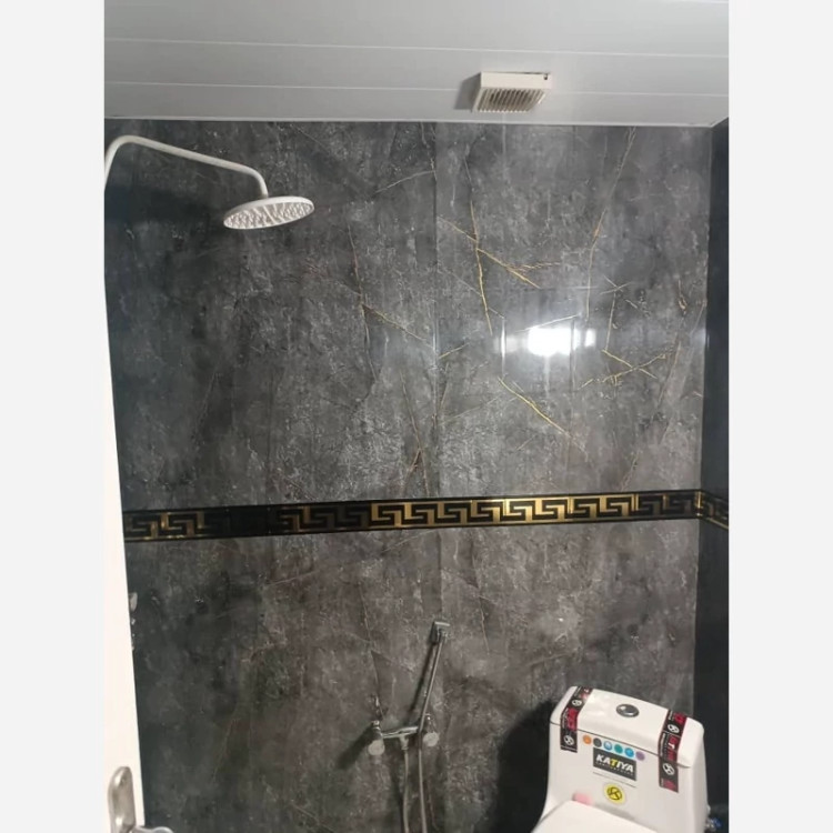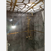 برچسب کابینت طرح سنگ هایگلاس طوسی پررنگ رگه طلایی - 3554