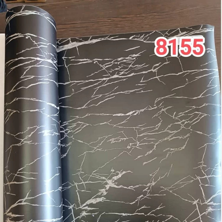 برچسب کابینت طرح سنگ سوپرمات مشکی ضخیم رگه سفید - 8155