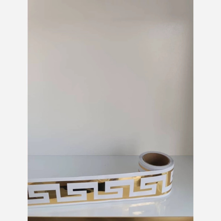 برچسب قرنیز و بوردر طرح ورساچه طلایی و سفید عرض 10 سانت