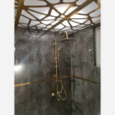 بر چسب کابینت هایگلاس طرح سنگ ضخیم طوسی پررنگ رگه طلایی - 3554